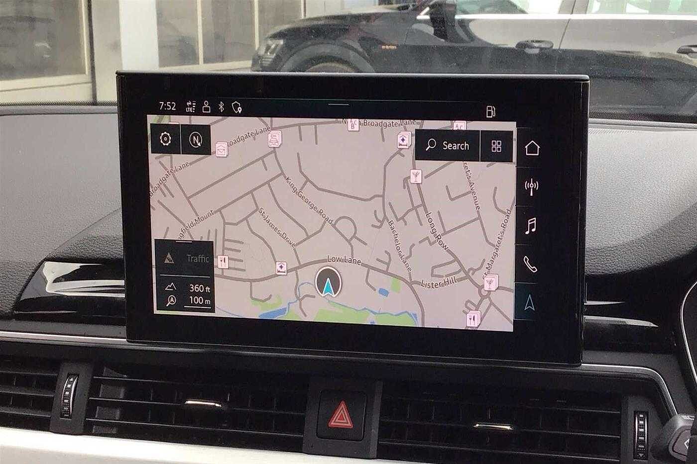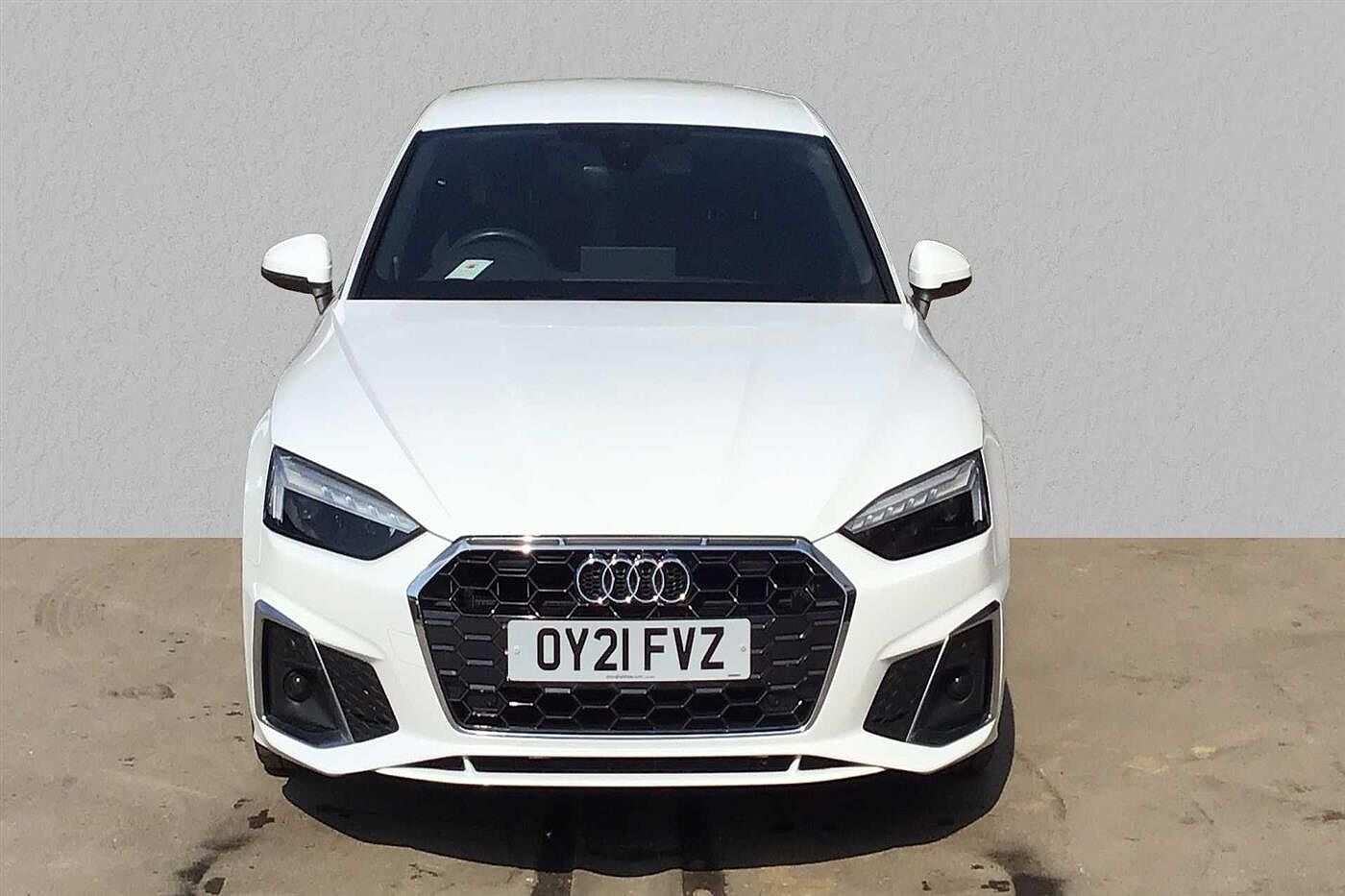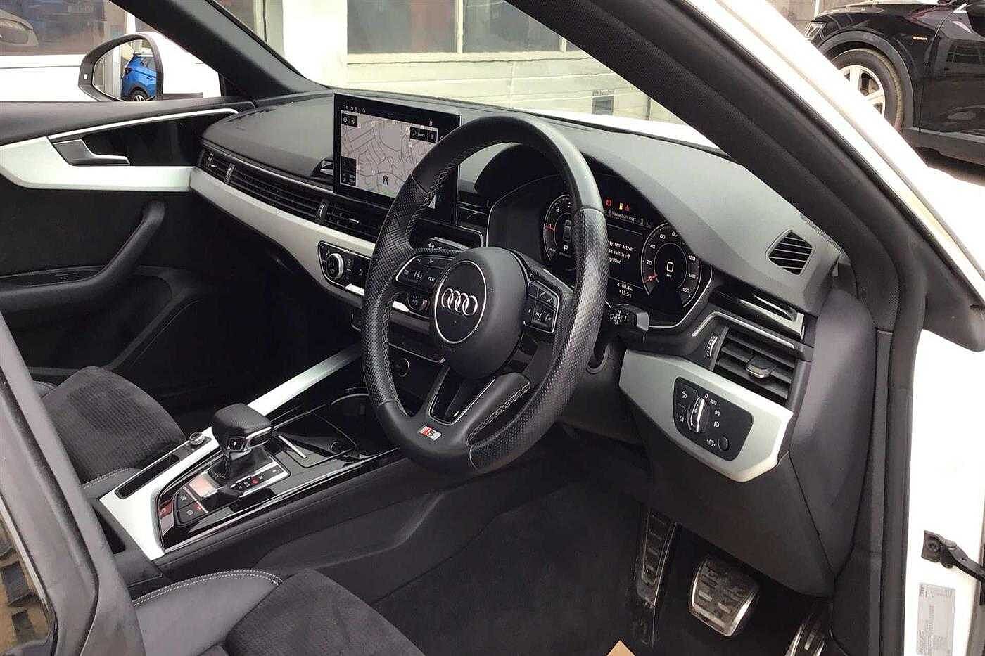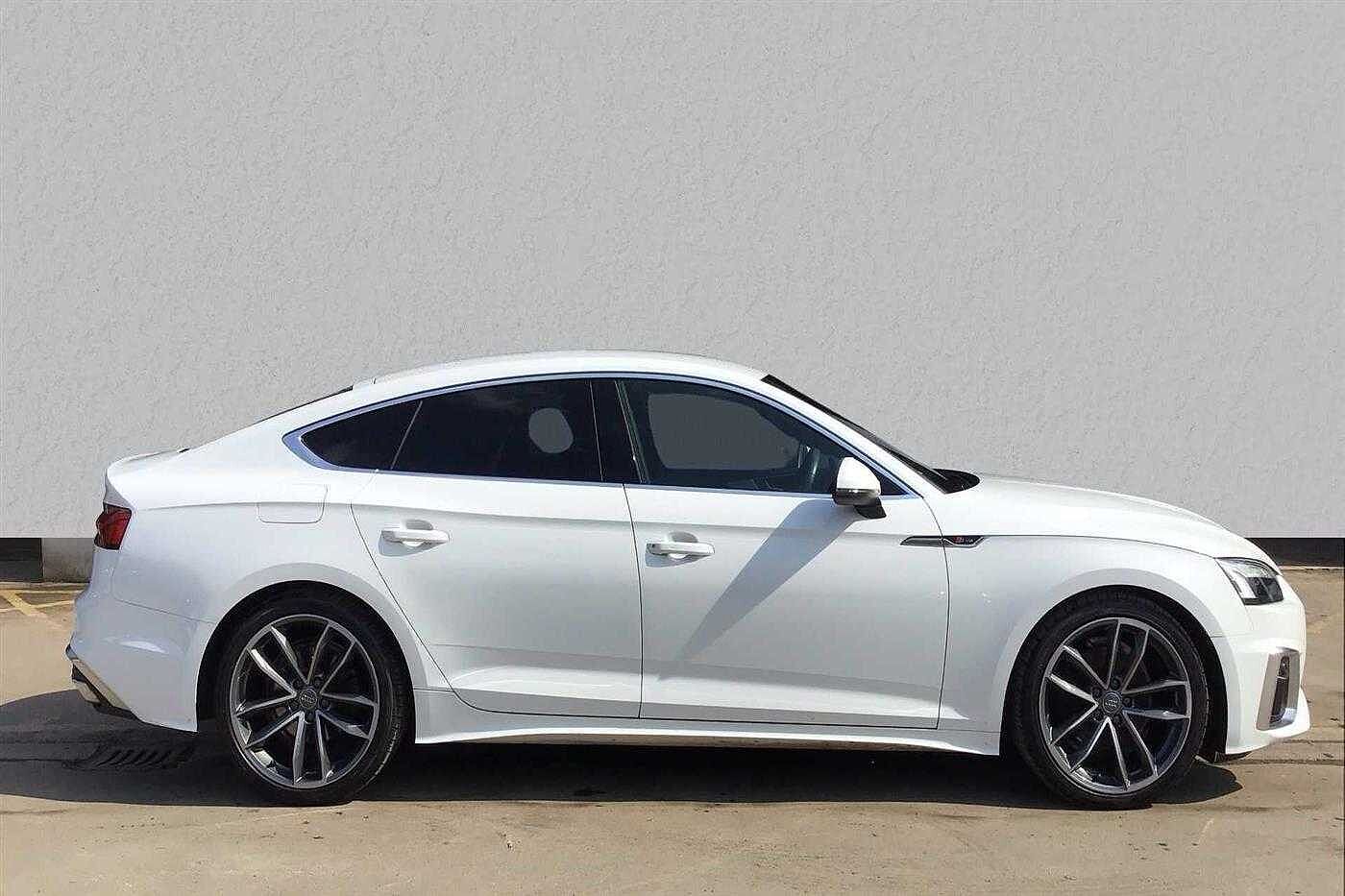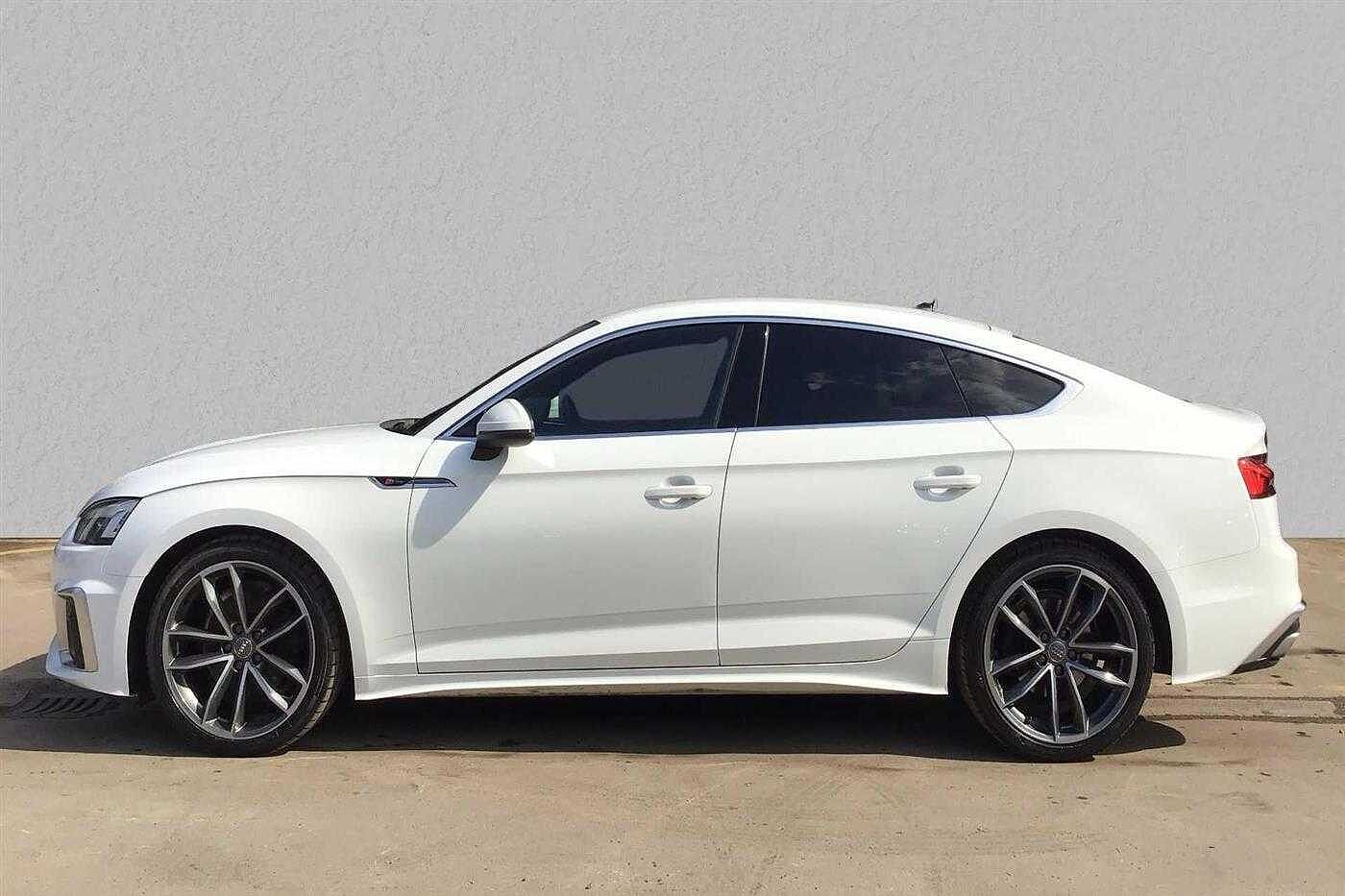 Audi A5 Sportback 2.0 35 TDI 163ps S Line S Tronic finished in White with black half leather matching interior. Specification includes anti-lock brakes, satellite navigation, traction control system, cruise control, alloy wheels (19in), climate control (trizone automatic climate control, seat - isofix anchorage point, air bag passenger, power-assisted steering, dab radio, electric windows., armrest (front/rear), seats sports (front), privacy glass., usb connection, parking aid (rear parking camera), steering wheel mounted controls (gears), tinted glass (rear windows), rain sensor, body coloured bumpers, head light sensor (head light sensor), immobiliser, heated rear screen, tailgate window (electric), keyless go (keyless go), chassis (sport), adjustable steering column/wheel (rake/reach), air bag driver, air bag side (front side & front curtain), alarm, bumpers, central door locking (remote), computer (driver information system), cup holder, door lighting, electric windows (front), electronic brake force distribution, electronic stability programme, exterior lighting (led daytime running lights), exterior wrap (exterior wrap), gear knob leather, head restraints (front/rear), height adjustable driver seat., interior finishes (metal), limited slip differential, mirrors internal (automatic dimming rear view), on-board monitor (unspecified), seat lumbar support (driver/passenger electric), seats heated (driver/passenger), seats split rear, start/stop system (start/stop system), steering wheel leather, tele aid, third brake light, tyre pressure control, tyre repair kit and voice activated controls.