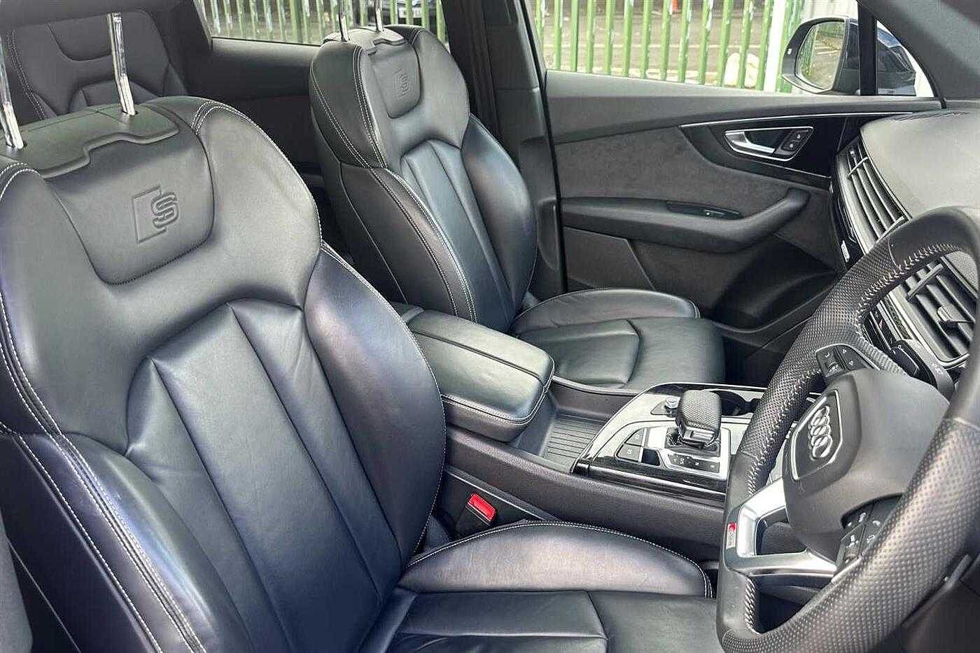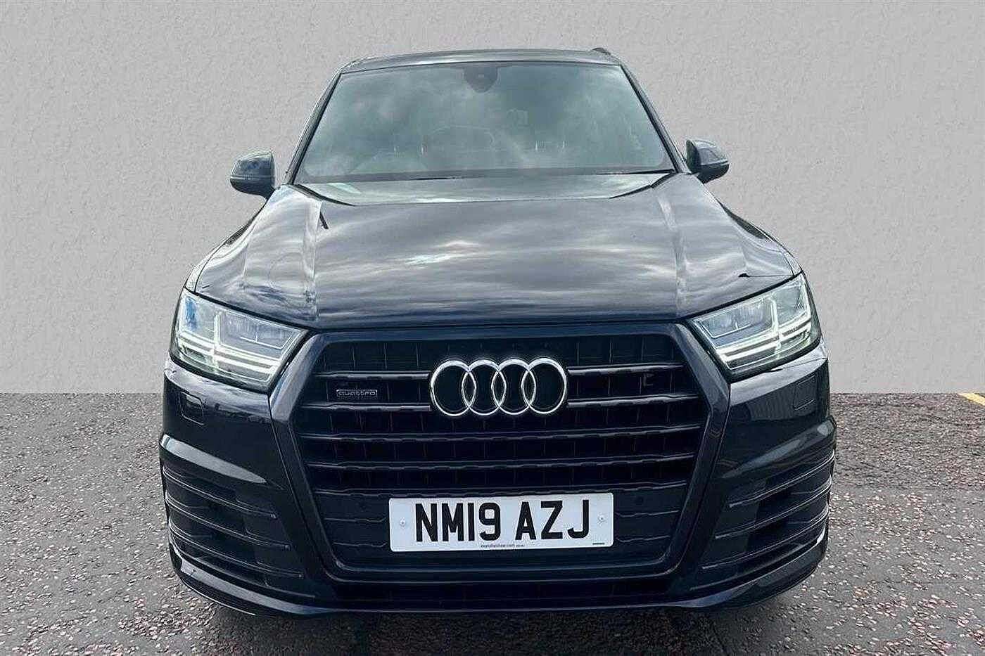 Audi Q7 3.0 TDI quattro (286 PS) Black Edition 50 finished in Black with matching interior. Specification includes anti-lock brakes, satellite navigation, cruise control, alloy wheels (21in), climate control, seat - isofix anchorage point (six seats - rear), air bag passenger, hill descent control, power-assisted steering, dab radio, armrest (front), mirrors external (memory electric/heated/folding), usb connection, parking aid (rear parking camera), 3-sp. lth. multi-fun. sport st. wheel/gear paddles, rain sensor, self-levelling suspension, body coloured bumpers, head light sensor (head light sensor), rear wash/wipe (rear), immobiliser, heated rear screen, tailgate window (electric), all-weather led headlights, air bag driver, air bag side (front side & front curtain), alarm, bumpers, central door locking (remote), centre rear seat belt, computer (driver information system), electric parking brake (electric parking brake), electric windows (front/rear), electronic brake force distribution, electronic stability programme, exterior lighting (led daytime running lights), head restraints (front/rear), in car entertainment (video entertainment system), interior finishes (metal), mirrors internal (automatic dimming rear view), panoramic glass sunroof, power socket, privacy glass, roof rails, seat lumbar support (driver/passenger electric), seats electric (driver/passenger - driver memory), seats heated (driver/passenger), seats split rear, sound processor (amplifier), start/stop system (start/stop system), steering wheel mounted controls, tele aid, telephone equipment (bluetooth interface), third brake light, tyre pressure control, tyre repair kit, upholstery leather and voice activated controls.