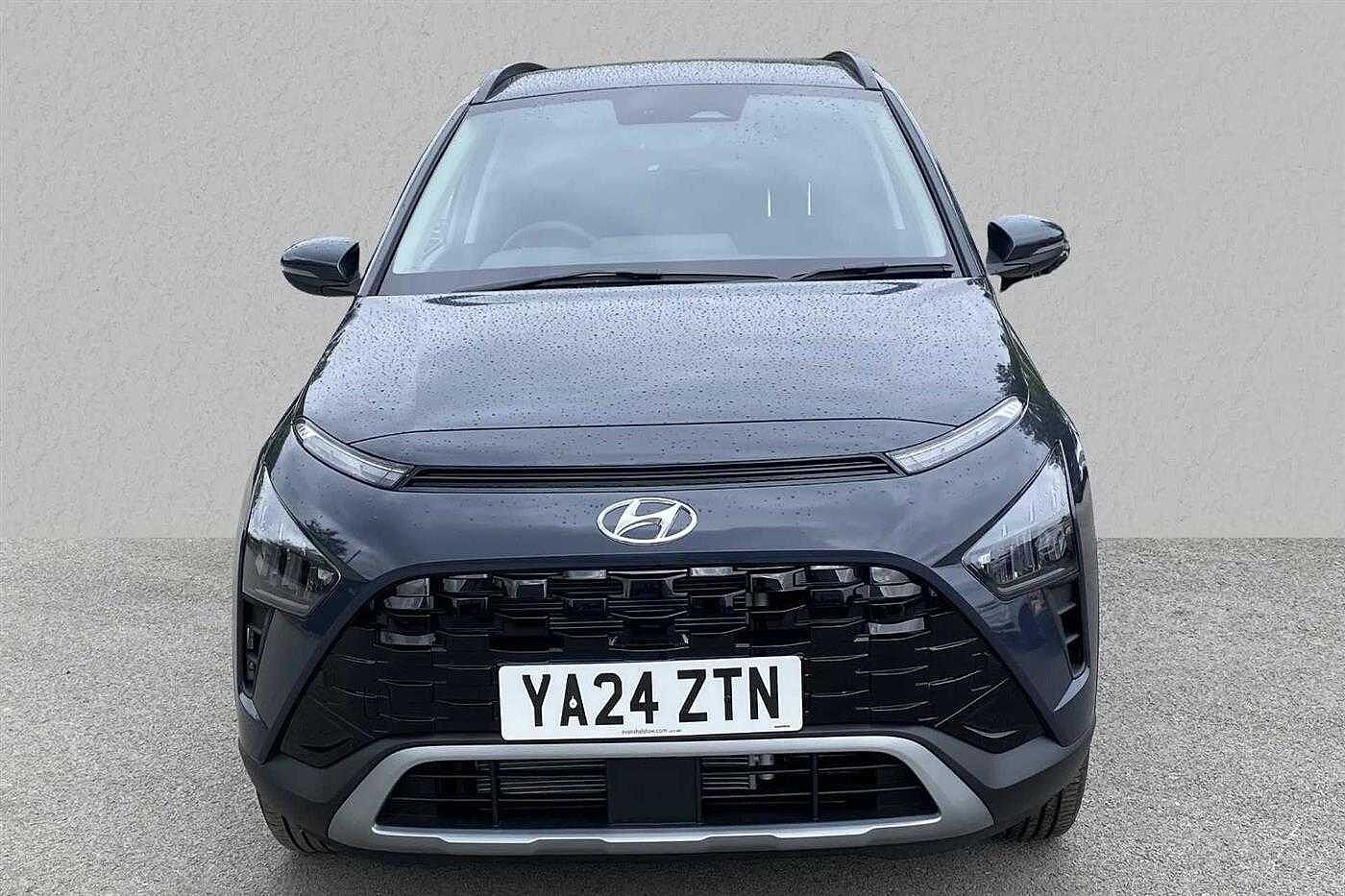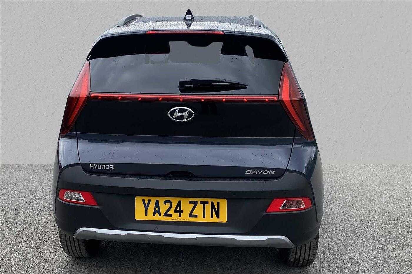 Hyundai BAYON 1.0 T-GDi (120ps) Premium 48 Volt MHEV DCT finished in Pearl - Aurora Grey with matching interior. Specification includes anti-lock brakes, climate control, power-assisted steering, alloy wheels (17in), cruise control, satellite navigation, in car entertainment (radio), immobiliser, mirrors external (electric heated/folding), front fog lights, rear wash/wipe (rear), armrest (front), adjustable steering column/wheel (rake/reach), air bag driver, air bag passenger, alarm (perimetric), body coloured bumpers, central door locking (remote), centre rear seat belt, child locks (manual), dab radio, deadlocks, electric windows (front/rear), electronic brake force distribution, electronic stability programme, exterior cornering lighting (exterior cornering li, gear knob leather, head light sensor (head light sensor), head restraints (front/rear), heated rear screen, interior finishes, mirrors internal (automatic dimming rear view), parking aid (rear parking camera), power socket (front), rear spoiler, roof rails, safety system (lane control assistant), seat - isofix anchorage point (two seats - rear), seat belt pre-tensioners (front), seat height adjustment (driver), seats heated (driver/passenger), seats split rear, steering wheel heated, steering wheel leather, steering wheel mounted controls (audio/telephone), sun visor, tele aid, telephone equipment (bluetooth interface), third brake light, tinted glass (front), trip computer, tyre pressure control, tyre repair kit, voice activated controls and windscreen wiper (front).