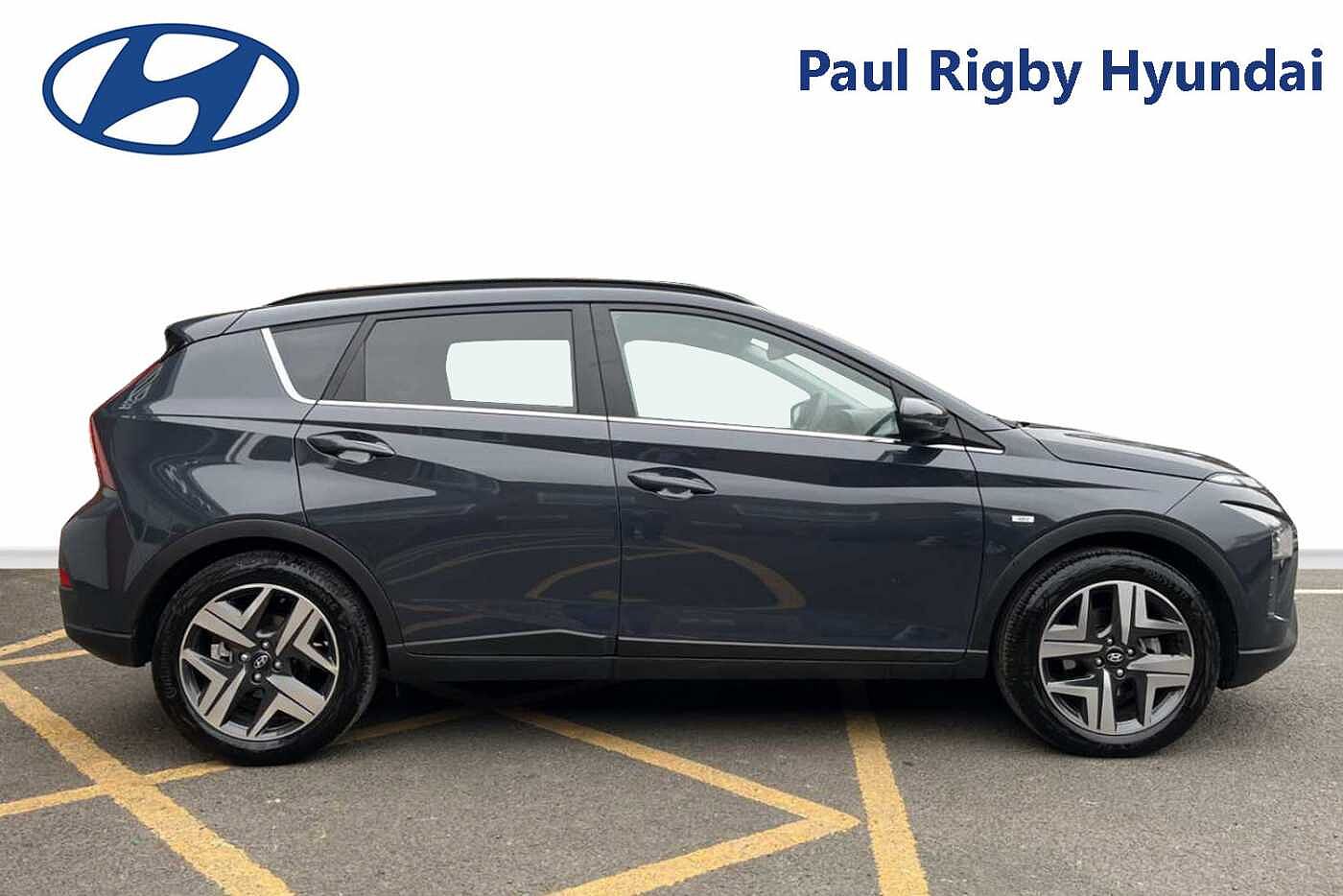 Here at Paul Rigby Hyundai Bromsgrove, we are proud to offer this stunning prepared Hyundai Bayon Premium for sale finished in the gleaming Aurora Grey. The Bayon is small on the outside but big on the inside with its superbly crafted crossover SUV design to make a lasting impression, furthermore standard across the range Bayon's are fitted with the efficient 48volt mild hybrid powertrain. With the 1 litre T-GDI petrol engine and 48volt mild hybrid system the Bayon will return an excellent combined fuel consumption figure of around 53.3mpg. Visibility, all around, in the Bayon is excellent and combined with the higher seating position it provides a wonderful driving position added with the sporty design elements allowing the Bayon to be eye catching and stand out from the crowd. Boot space comes in at 334 litres while rear passengers have excellent legroom for a comfortable ride. Some of the other safety and tech features on the Bayon Premium include, rear guidance parking camera, rear parking sensors, apple car play & android auto, lane departure warning system, lane keep assist, drive modes, cruise control and many more. The Paul Rigby Group has been passionate about customers, environment and standing out within the automotive industry since 2010. Our Hyundai Branch which has been a family business since 1996, that has gone above and beyond to make sure our customers have the best possible experience throughout their purchase and beyond. Drop by Hyundai Bromsgrove and our devoted sales and service department will be sure to fulfil any enquires you may have.