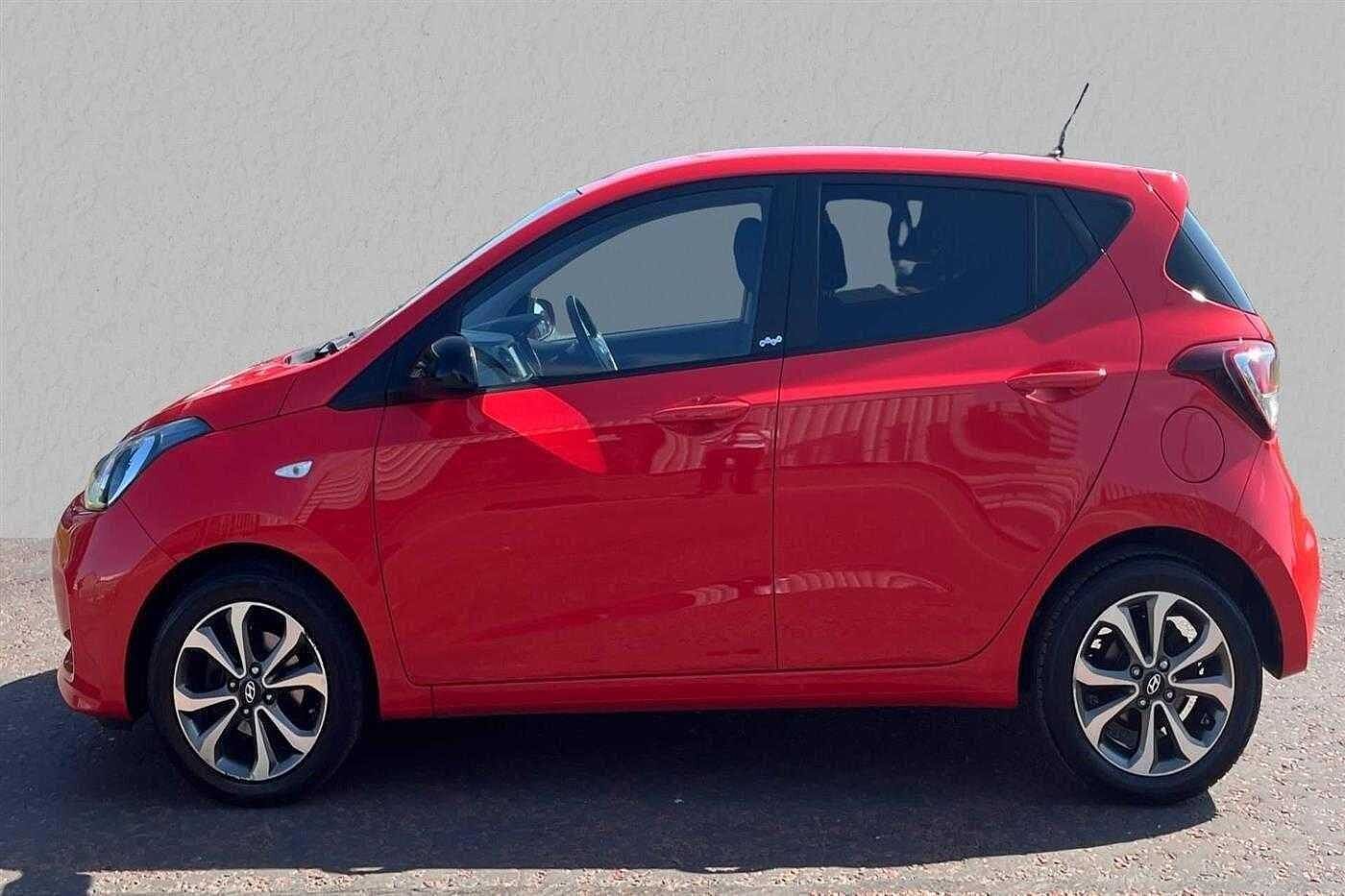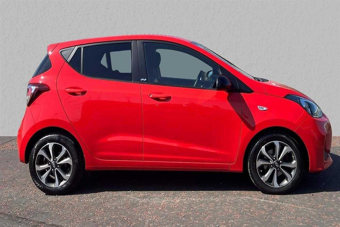 Hyundai i10 Hatchback 5d 1.0 (67ps) PLAY finished in Tomato Red with black cloth matching interior. Specification includes air-conditioning, perimetric alarm, power assisted steering (pas), 15in alloy wheels, cruise control, 60/40 split rear folding seats, rear rear wash/wipe, remote central door locking, trip computer, immobiliser, 12v auxillary power socket, air conditioning, anti-lock brakes, bluetooth connectivity, bluetooth interface telephone equipment, day running lights, driver, driver seat height adjustment, electronic stability programme, foglights, front/rear electric windows, front/rear head restraints, ipod/mp3 connectivity, multi functional steering wheel, passenger and front side air bags, radio/mp3, rake adjustable steering column/wheel, satellite navigation and tinted glass.