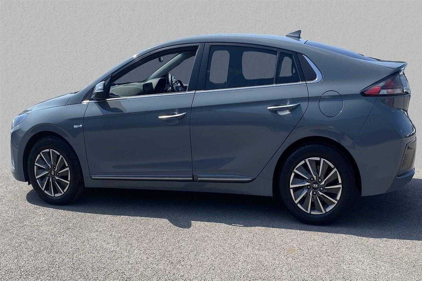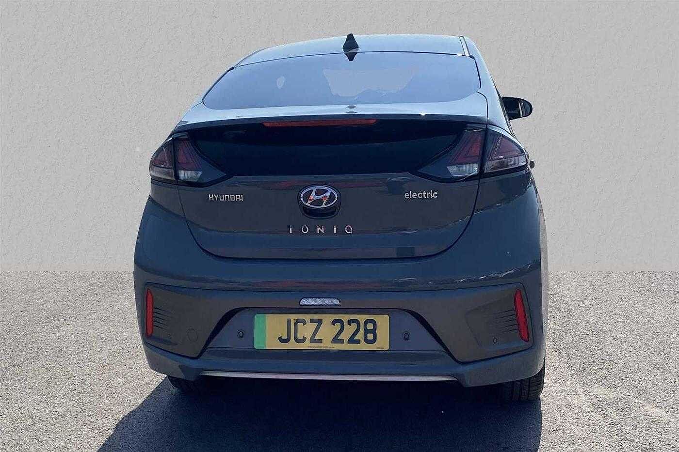 Hyundai IONIQ E (88kw) Premium SE Electric Auto 5Dr Hatch finished in Amazon Grey with black leather matching interior. Specification includes anti-lock brakes, climate control, air conditioning., power-assisted steering, airbags., alloy wheels (16in), cruise control, satellite navigation, computer, in car entertainment (radio), electric mirrors., immobiliser, mirrors external (electric heated/folding), rear wash/wipe (rear), rain sensor, armrest (front), electric windows., power steering, air bag driver, air bag passenger, air bag side (front side & front curtain), automatic lights, blind spot assist (blind spot assist), bluetooth, cargo space divider, central door locking (remote), centre rear seat belt, comfort ventilated front seats, dab digital radio, deadlocks, electric parking brake (electric parking brake), electric windows (front/rear), electronic brake force distribution, electronic stability programme, exterior lighting (led lights), extra storage, head restraints (front/rear), heated rear screen, isofix, key (keyless entry), mirrors internal (automatic dimming rear view), on-board monitor (unspecified), parking aid (rear parking camera), rear parking sensors, rear spoiler, reversing camera, seat height adjustment (driver/passenger), seat lumbar support (driver electric), seats heated (front/rear), seats split rear, side protection mouldings, sound processor (amplifier), speed limiter., start/stop system (start/stop system), steering wheel heated, steering wheel leather, steering wheel mounted controls (audio/cruise cont, sun visor, tele aid, third brake light, tinted glass, trafficmaster, tyre pressure control, tyre repair kit, upholstery leather, usb connectivity, windscreen shadeband and windscreen wiper.