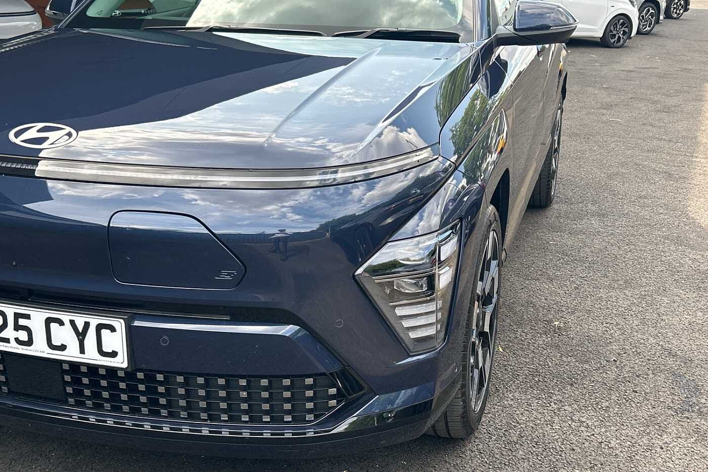 With only 2,000 miles on the clock, this 2025 Hyundai KONA Ultimate offers an exceptional opportunity to acquire a nearly new vehicle. Being Hyundai manufacturer approved, this electric KONA Ultimate comes with the assurance of quality and reliability. The car is equipped with automatic headlights with dusk sensor, ensuring optimal visibility at all times, and also boasts Bluetooth connectivity with voice recognition. The heated steering wheel provides added comfort during colder months, and the wireless phone charging pad offers convenient charging on the go.