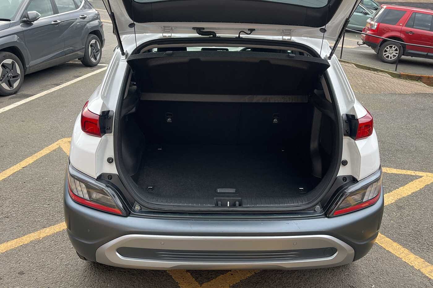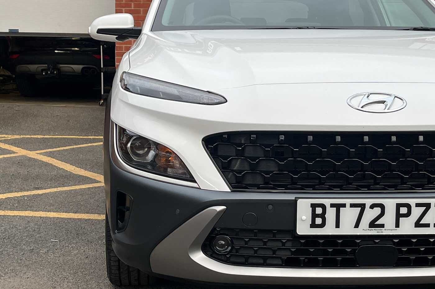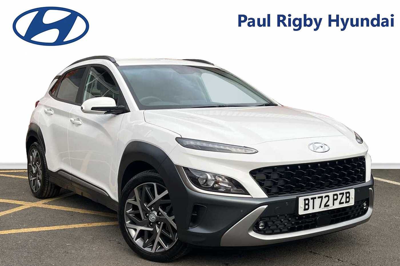 Here at Paul Rigby Hyundai Bromsgrove, we are proud to offer you this superbly prepared Hyundai Kona Hybrid Premium. The Kona is impressive from every angle, with sculptured lines and chiselled edges, full of the latest smart tech and safety features. This Premium model is fitted with a 1.6 GDI Hybrid petrol engine that produces 141ps, the electric motor works efficiently with the engine allowing for it to automatically choose between for the best fuel efficiency results and quickly recharges the 1.56kWh battery from the help of the regenerative breaking. Fuel figures the Kona Premium will return a combined average of around 56.6mpg. The interior is fitted with a superbly comfortable black cloth seats with excellent quality materials, driving position allows for clear visibility of the road, and lots of adjustability, spacious rear seats will allow passengers to be relax and enjoy the ambient cabin of the Kona. Practicality wise, plenty of storage space with large door bins, armrest compartment and a boot space of 374 litres, which expands to 1156 litres with the rear seats down. Some of the latest smart tech and safety features include forward collision assist, lane keep assist, rear parking camera, front and rear parking sensors, smart cruise control, SOS roadside assistance button, krell premium sound, wireless phone charging pad, apple car play & android auto, 10.25' touchscreen nav and many more. The Paul Rigby Group has been passionate about customers, environment and standing out within the automotive industry since 2010. Our Hyundai Branch which has been a family business since 1996, that has gone above and beyond to make sure our customers have the best possible experience throughout their purchase and beyond. Drop by Hyundai Bromsgrove and our devoted sales and service department will be sure to fulfil any enquires you may have.