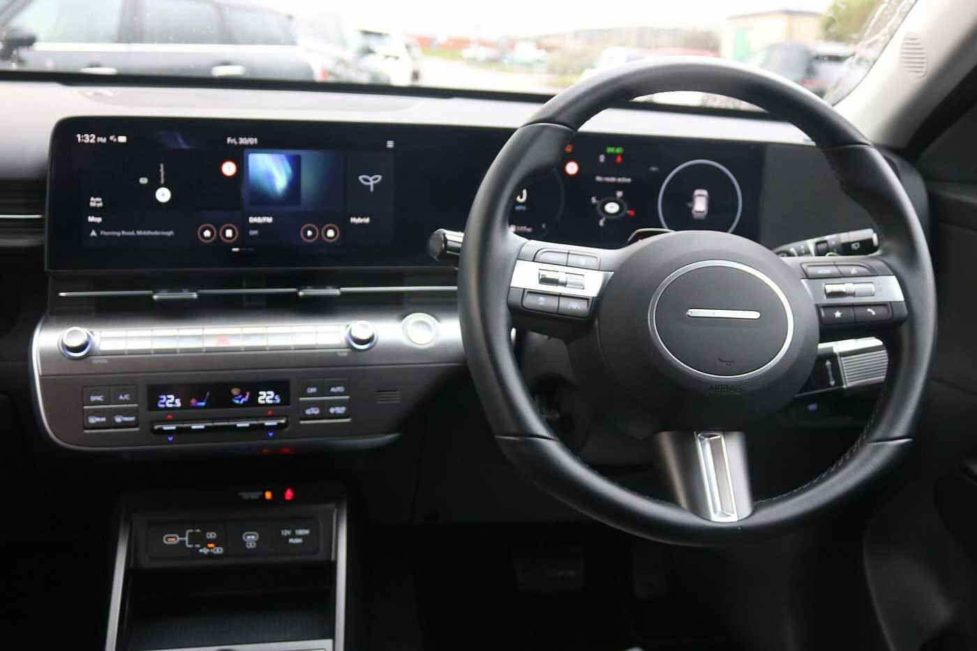 This 2024 Hyundai KONA h GDi Advance is a superb example, having had only one owner since new. This stylish Advance trim model boasts a 1.6 litre petrol hybrid engine, meeting Euro 6 emission standards. It comes equipped with a useful rear camera and guidance system, alongside front and rear parking sensors for effortless manoeuvring. Enjoy the convenience of Smart Cruise Control with Stop and Go functionality, and let the automatic headlights with dusk sensor take care of themselves. Stay connected on the go with seamless smartphone integration for both Apple CarPlay and Android Auto. This KONA offers excellent efficiency, achieving an impressive 60 miles per gallon, which highlights its cost effectiveness compared to similar vehicles. Furthermore, its low CO2 emissions and low insurance group rating indicate that running costs are kept to a minimum, making it an economical choice.