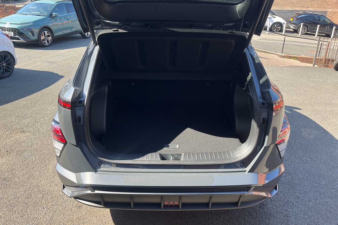 Here at Paul Rigby Hyundai Bromsgrove, we are pleased to offer this stunningly prepared all new Kona Electric 65kWh N-Line finished in the gleaming Ecotronic Grey. This Kona Electric is fitted with the long range 65 kWh battery that offers a range of 319 miles and an output of 218ps. The new Kona Electric offers a futuristic new look, an interior cabin that is spacious for all your adventures. Delivering a sporty acceleration, this model will do 0-62mph in 7.8 seconds for an exhilarating driving experience. Interior is fitted with a highly comfortable black cloth interior, drivers and front passenger seat are heated and also equipped with a heated steering wheel, perfect for winter. The boot space is a huge improvement from the previous Kona Electric, this comes in at a huge 466 litres. There is also added practicality with a front boot that has a space of 27 litres, for additional storage. Kona Electric sets a new standard within the subcompact SUV segment with fantastic smart technology as standard, such as dual 12.3' screens for the driver's cluster and infotainment system, apple car play and android auto, front and rear parking sensors, rear guidance camera, smart cruise control with stop and go, lane keep assist, smartphone wireless charging pad, forward collision avoidance assist and many more.