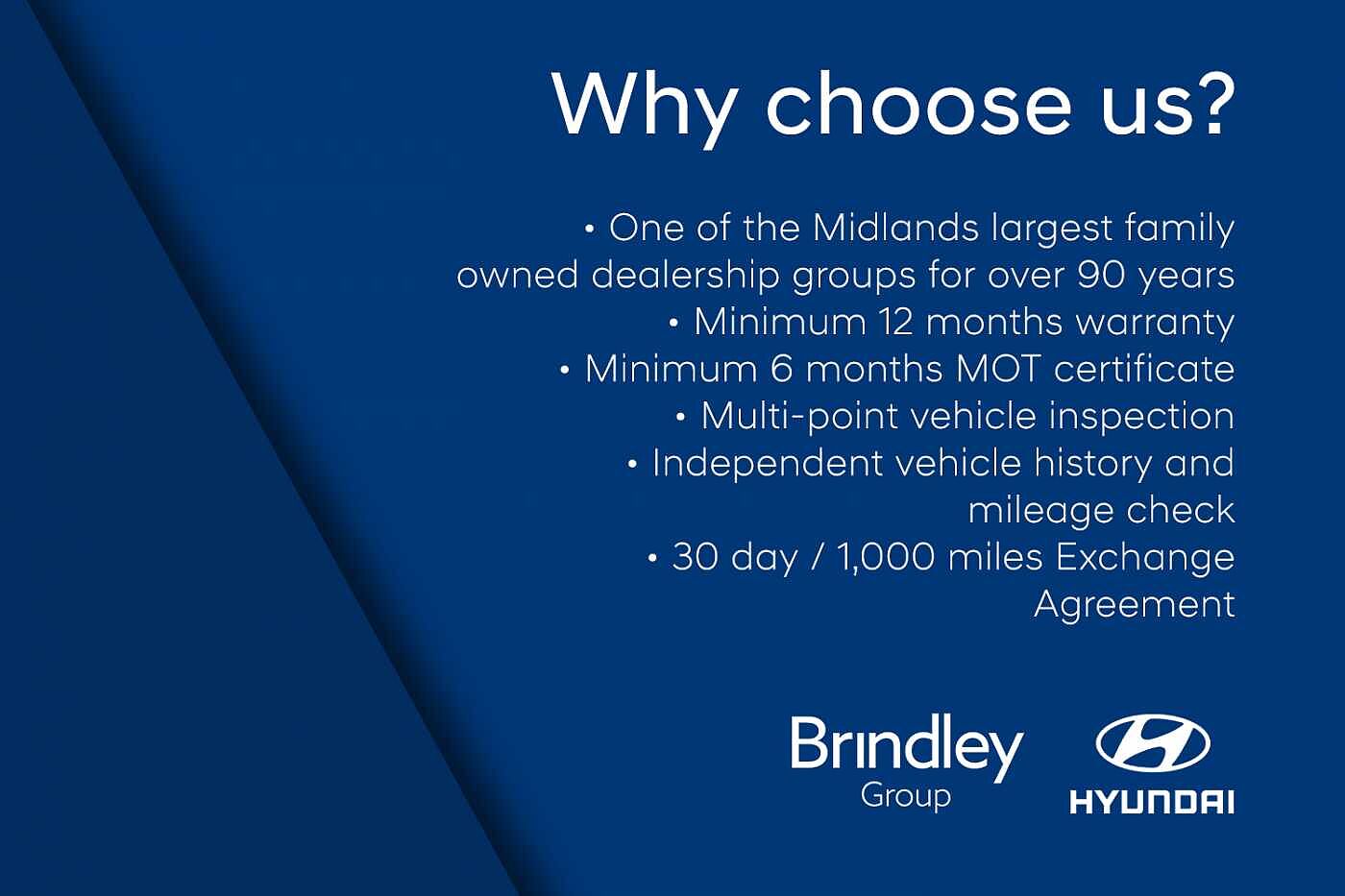 Our standard Approved Used cars also come with a warranty – Balance of manufacturer warranty for cars less than 5 years old, or retailer supplied warranty options for cars more than 5 years old. This is applicable to Hyundai cars with less than 80,000 miles and no older than 8 years old (petrol/diesel), or 7 years old if electric, plug-in hybrid or hybrid.