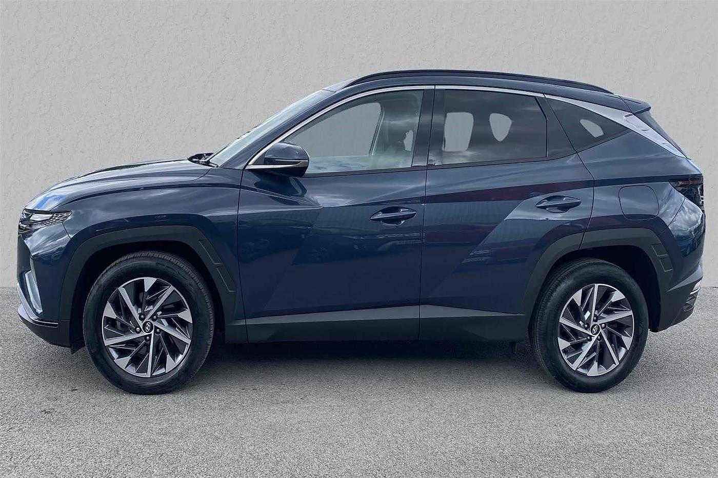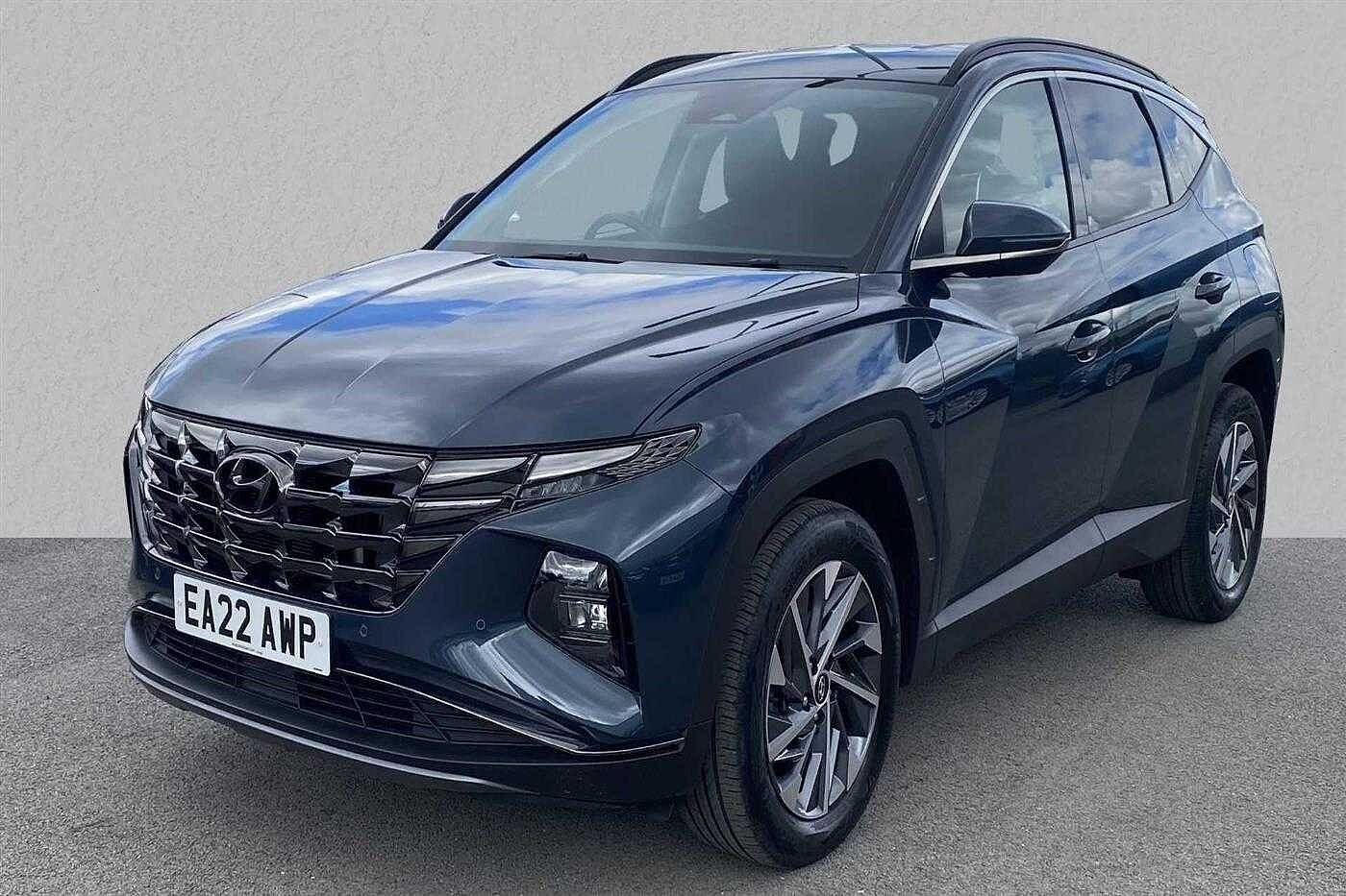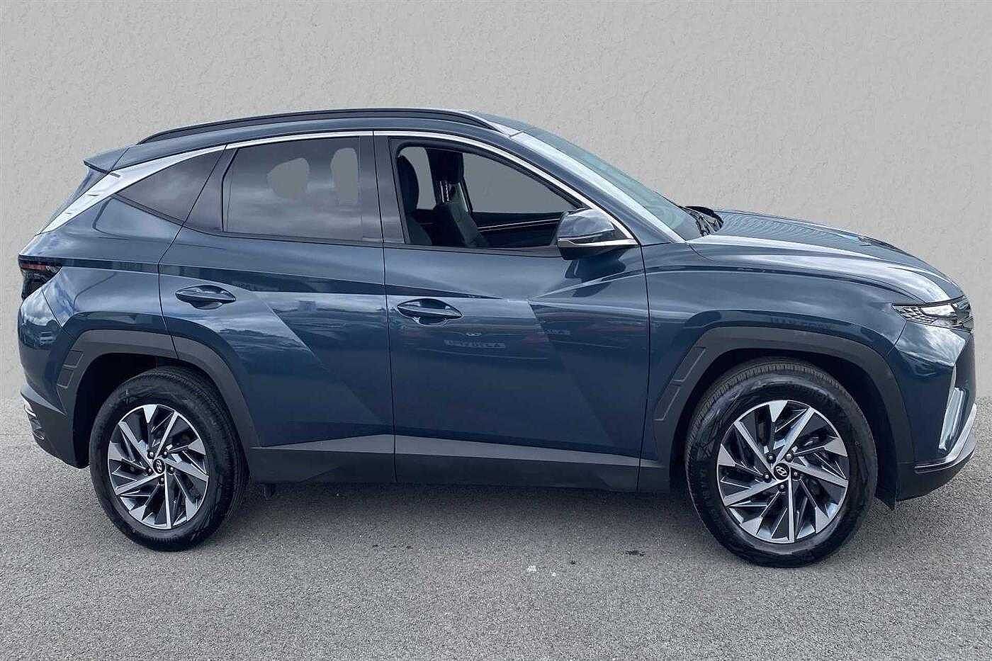 Hyundai TUCSON HYBRID 1.6 T-GDi (150ps) Premium finished in Meta Blue with black cloth matching interior. Specification includes anti-lock brakes, climate control, air conditioning., power-assisted steering, airbags., alloy wheels (18in), cruise control, satellite navigation, touch screen monitor (touch screen monitor), tinted glass (rear windows), electric mirrors., immobiliser, mirrors external (electric heated/folding), front fog lights, rear wash/wipe (rear), rain sensor, armrest (front/rear), electric windows., power steering, air bag driver, air bag passenger, air bag side (curtain), alarm (perimetric), automatic lights, blind spot assist (blind spot assist), bluetooth, body coloured bumpers, bumpers, central door locking (remote), centre rear seat belt, child locks (electric), computer (driver information system), dab digital radio, deadlocks, door lighting, electric parking brake (electric parking brake), electric windows (front/rear), electronic brake force distribution, electronic stability programme, exterior lighting (led daytime running lights), exterior wrap (exterior wrap), gear knob leather, head restraints (front/rear), heated rear screen, hill descent control, hill holder, interior finishes (metal), isofix, key (keyless entry), load anchorage points, mirrors internal (automatic dimming rear view), parking aid (rear parking camera), rear parking sensors, reversing camera, roof rails, safety system (lane control assistant), seat - isofix anchorage point (two seats - rear), seat belt pre-tensioners (front), seat height adjustment (driver/passenger), seat lumbar support (driver electric), seats heated (driver/passenger), seats split rear, speakers (nine), speed limiter., steering wheel heated, steering wheel leather, steering wheel mounted controls (audio/telephone), sun visor, tele aid, third brake light, trip computer, tyre pressure control, tyre repair kit, usb connectivity and windscreen wiper (front).