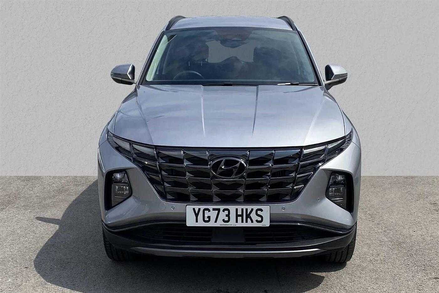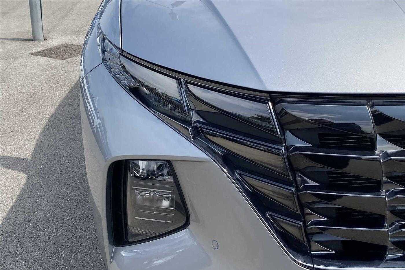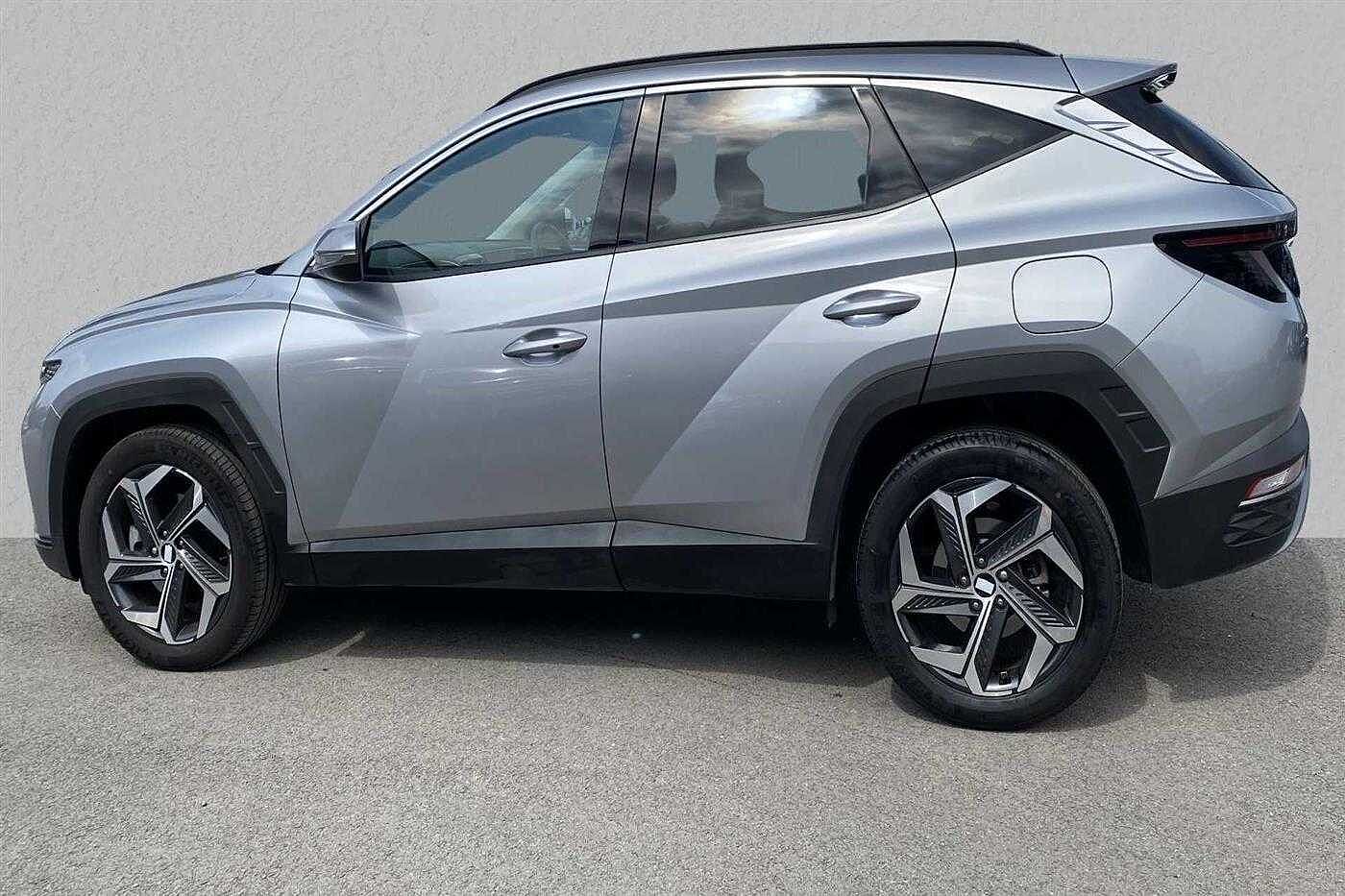 Hyundai TUCSON HYBRID 1.6 T-GDi (230ps) Premium finished in Metallic - Shimmering Silver with matching interior. Specification includes anti-lock brakes, climate control, power-assisted steering, alloy wheels (19in), cruise control, satellite navigation, touch screen monitor (touch screen monitor), tinted glass (rear windows), immobiliser, mirrors external (electric heated/folding), front fog lights, rear wash/wipe (rear), rain sensor, armrest (front/rear), air bag driver, air bag passenger, air bag side (curtain), alarm (perimetric), blind spot assist (blind spot assist), body coloured bumpers, bumpers, central door locking (remote), centre rear seat belt, child locks (electric), computer (driver information system), dab radio, deadlocks, door lighting, electric parking brake (electric parking brake), electric windows (front/rear), electronic brake force distribution, electronic stability programme, exterior lighting (led daytime running lights), exterior wrap (exterior wrap), gear knob leather, head light sensor (head light sensor), head restraints (front/rear), heated rear screen, hill descent control, hill holder, interior finishes (metal), key (keyless entry), load anchorage points, mirrors internal (automatic dimming rear view), parking aid (rear parking camera), roof rails, safety system (lane control assistant), seat - isofix anchorage point (two seats - rear), seat belt pre-tensioners (front), seat height adjustment (driver/passenger), seat lumbar support (driver electric), seats heated (driver/passenger), seats split rear, speakers (nine), steering wheel heated, steering wheel leather, steering wheel mounted controls (audio/telephone), sun visor, tele aid, telephone equipment (bluetooth interface), third brake light, trip computer, tyre pressure control, tyre repair kit and windscreen wiper (front).