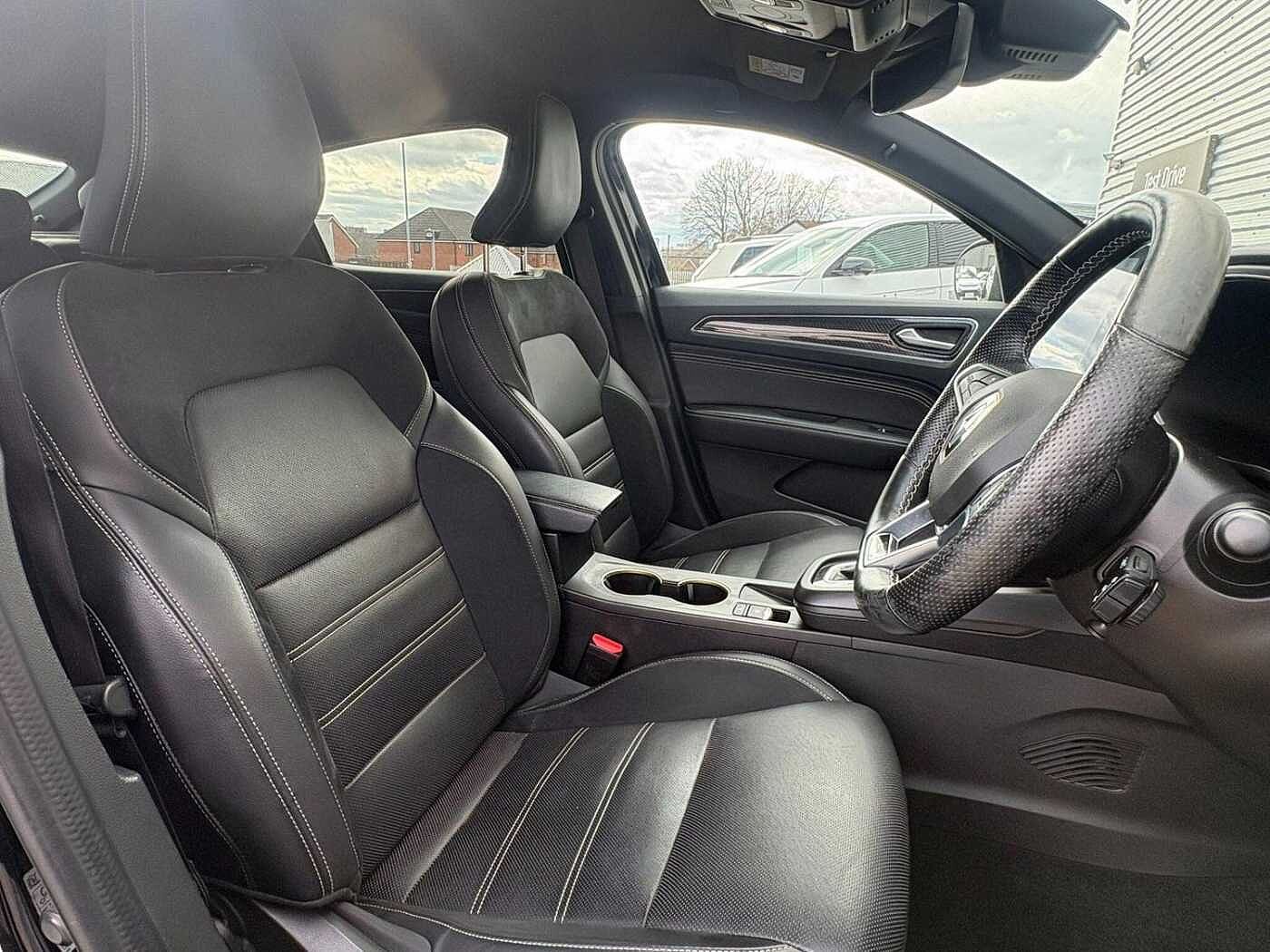- E-TECH Engineered suede-leather upholstery with gold stitching